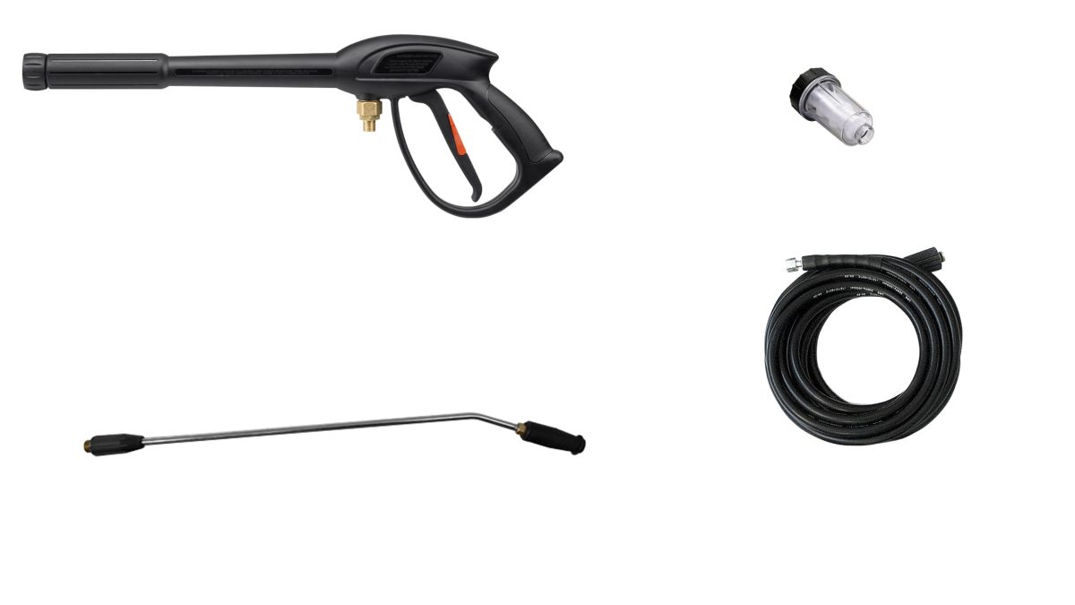 Myjka została wyposażona w profesjonalne akcesoria. Pistolet mosiężny – dla większego bezpieczeństwa pracy wszystkie połączenia są na mosiężne gwinty. Lanca z możliwością zmiany strumienia pracy. Wąż wysoko ciśnieniowy w PODWÓJNYM OPLOCIE – dzięki temu rozwiązaniu jest bezpieczny przy wysokich ciśnieniach oraz nie ulega uszkodzeniom mechanicznym.