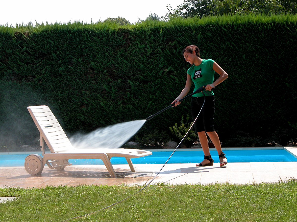 Dzięki płaskim dyszom zamontowanych na obracającym się ramieniu zwiększają wydajność czyszczenia nawet 10-krotnie, a obudowa skutecznie chroni przed rozpryskami wody. Na krawędzi znajduje się włosie chroniące przed wydostawaniem się wody i rysowaniem powierzchni.