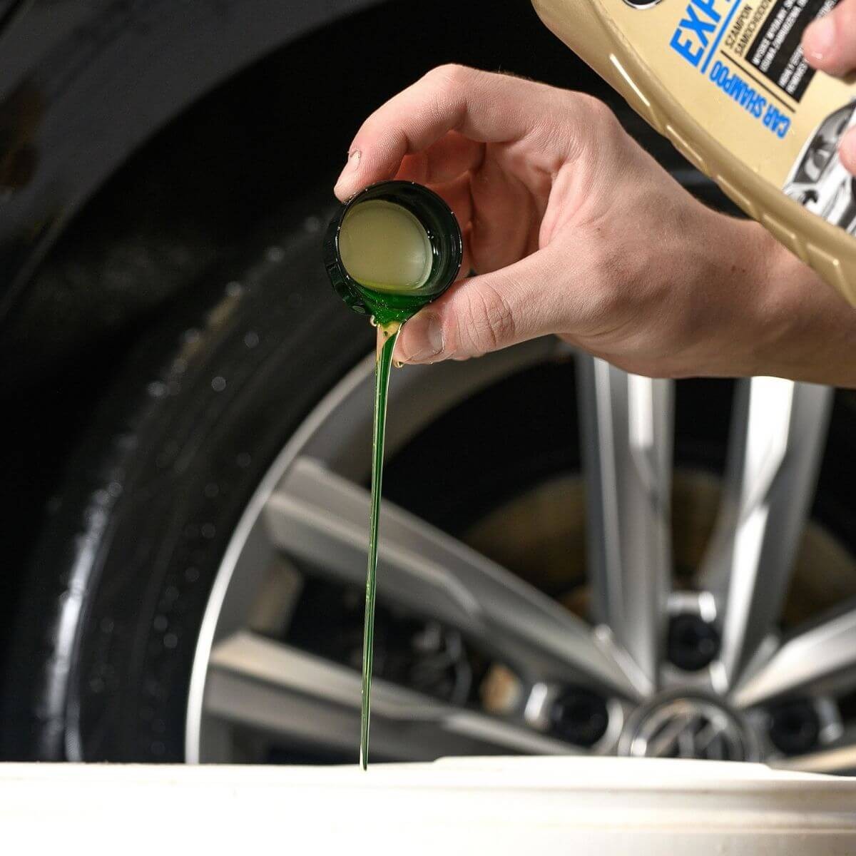 2. Wlać 1-3 nakrętki szamponu samochodowego na wiadro wody i wymieszać.